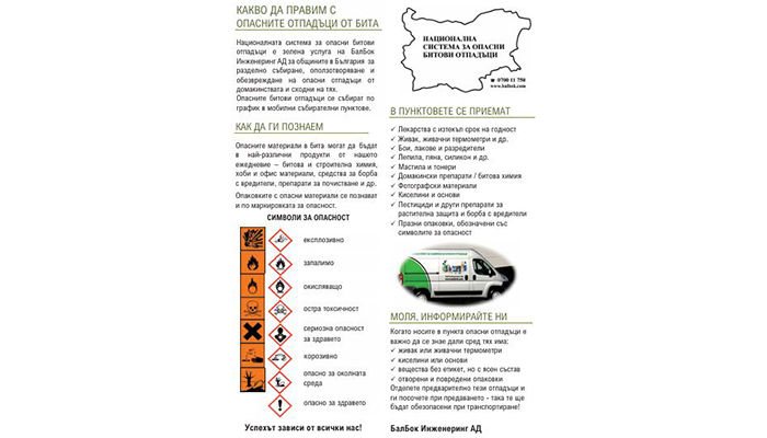 Община Благоевград и "БалБок Инженеринг“ АД организират кампания за събиране на опасни отпадъци от домакинствата.