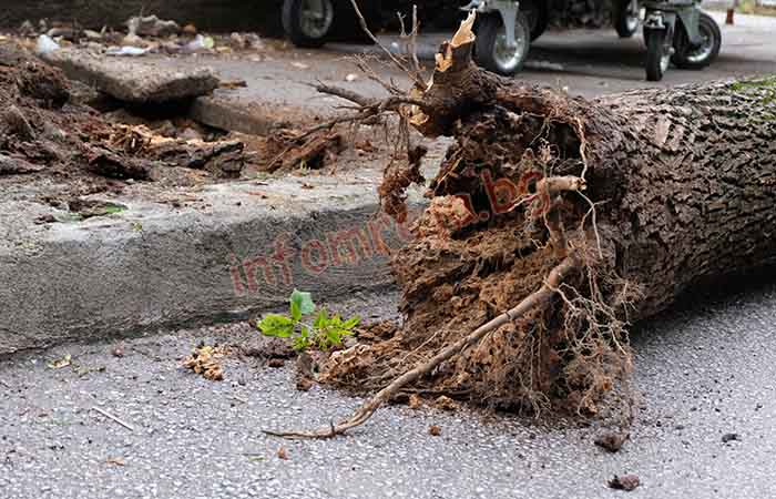 Екипите на пожарната ги отстраняват, но на много места са скъсани електропроводи и е прекъснато електроснабдяването. На територията на общ. Радомир на пътното платно посока гр. Кюстендил също има паднали дървета, който се отстраняват от огнеборците.