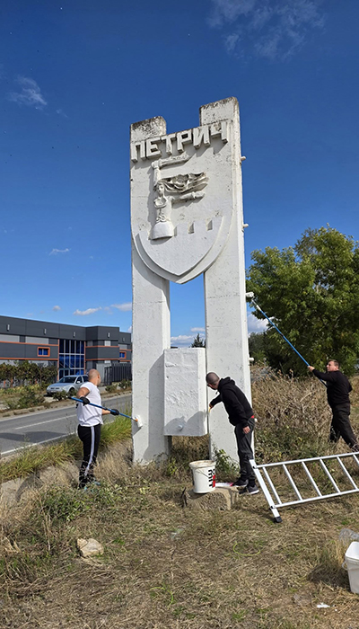 Доброволци почистиха и боядисаха монумента – табела на Петрич, на входа на града.