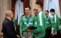 Радев с тениска и топка от националите ни, той ги награди с плакети