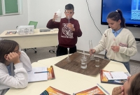 Учениците работят в новата лаборатория по химия и опазване на околната среда