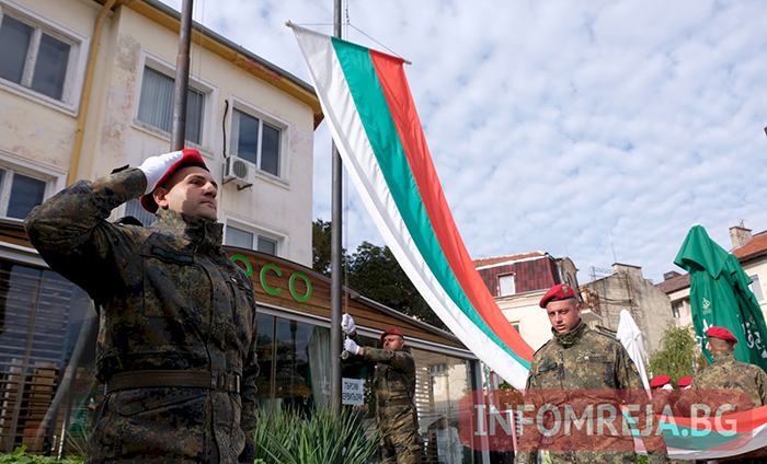 Ритуалът по издигане на националното знаме на Република България бе с начален час 10.30 на площад „Македония“. В него участваха Военно формирование 26 400 и Представителният духов оркестър на Сухопътните войски.