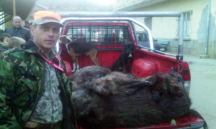 В късния следобед попаднали на стадо диви прасета. Юсуф Фейзиев стрелял пръв и успял да рани един глиган.