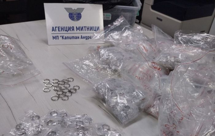 Недекларирани 14.552 кг сребърни пръстена, „маркови“ дрехи, парфюми и чанти, цигари, лекарствени препарати и хранителни добавки на обща стойност 129 241 лева задържаха митническите служители на МП Капитан Андреево, при проверка на микробус, влизащ в страната от Турция.