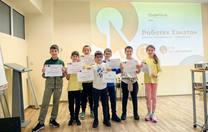 На 16 октомври 2025 г. в ПМГ „Проф. Емануил Иванов“ – Кюстендил се проведе вълнуващото технологично събитие „Роботех Хакатон“, част от европейската инициатива EU CodeWeek – Европейска седмица на програмирането.