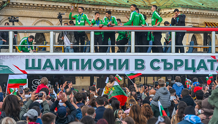 С автобус от "Студетски град" до площад „Ал. Невски“ в столицата пристигнаха националите ни по волейбол.